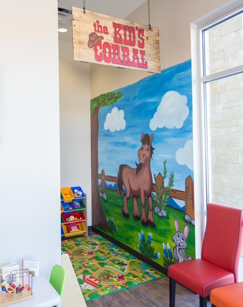 Please enjoy these pictures of Tiny Texans Pediatric Dentistry. From our play area for kids that is well-stocked with toys and games to the televisions playing cartoons in treatment rooms, our office was designed with patient and parent comfort in mind.